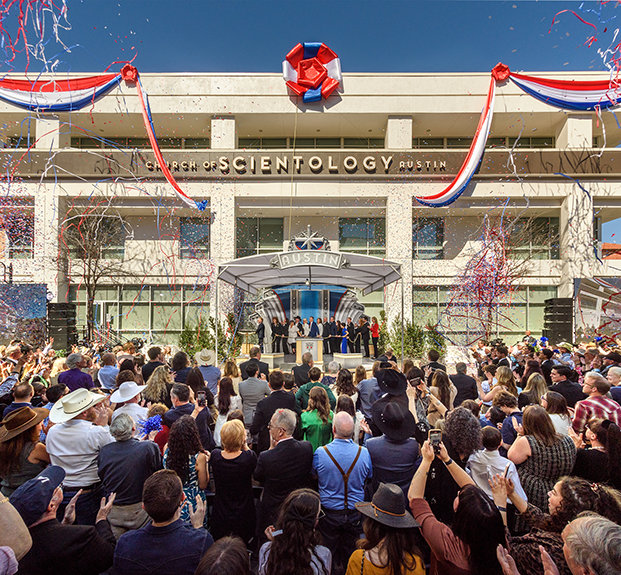 At the crossroads of all things Austin, crowds of Scientologists and guests gathered on a clear Saturday afternoon and gave an ecstatic Texas welcome to the new Ideal Church of Scientology Austin. The ribbon-cutting, the first in a wave of Grand Openings at the start of 2024, embodied the spirit of unabated growth that has become the hallmark of Scientology today.