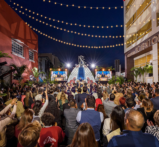 That emphatic welcome arrived with authority when Mr. David Miscavige, the ecclesiastical leader of the Scientology religion, took the stage to address all present. “Remember, the very essence and life force of an Ideal Org is, as our Founder envisioned, ‘An activity where people came to achieve freedom and where they had confidence they would attain it.’ That is what we celebrate today. It is the gift you are extending. And the vision made true by you, the heroes of this movement, in creating this Ideal Org,” Mr. Miscavige said. “You want to see history in the making in this Latin American megacity? Well, the moment is upon us—right here and right now.”