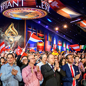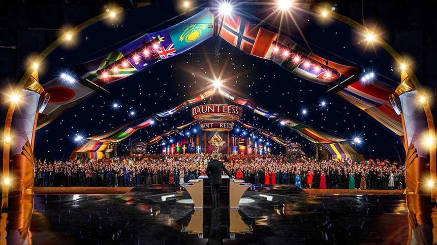 As the global congregation traversed the vibrant ruby-red carpet, they reveled in the enormous Grand Marquee and nearly blew the roof off as Mr. Miscavige arrived onstage to a ground-rumbling ovation lasting minutes. It was an expression not only of admiration for Scientology’s leader, but an acknowledgment of the enormity of the celebration at hand.